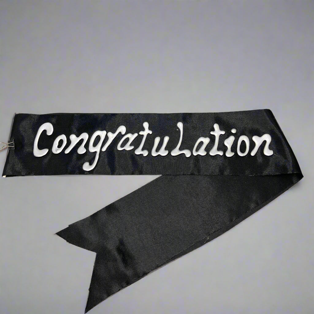 Celebrate in style with this playful Congratulation Sash! Perfect for graduations, or any achievement, it adds a fun and festive touch to your special moment. Lightweight and easy to wear, it’s designed to make the honoree feel extra special and ready to shine. Make every celebration memorable with this charming accessory!