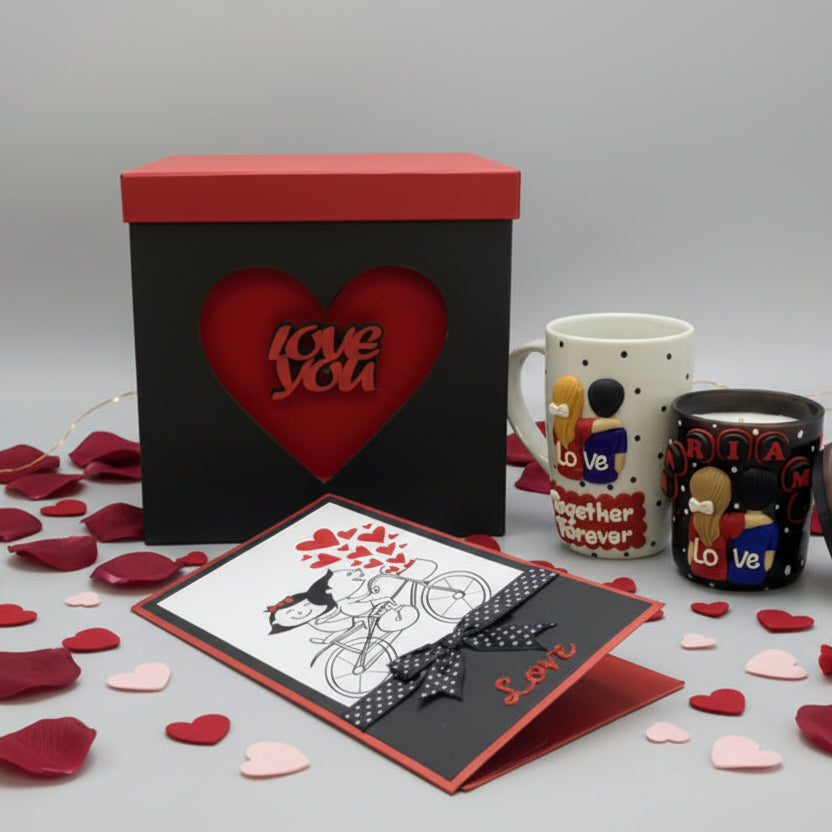 Express your love with our delightful Love You Bundle! This Valentine's gift set features a handmade ceramic mug, scented candle, heartfelt message card, and elegant Valentine's box packaging. Perfect for sharing warmth and affection with someone special.