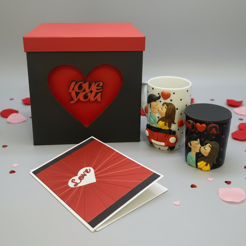 Express your love with our delightful Love You Bundle! This Valentine's gift set features a handmade ceramic mug, scented candle, heartfelt message card, and elegant Valentine's box packaging. Perfect for sharing warmth and affection with someone special.