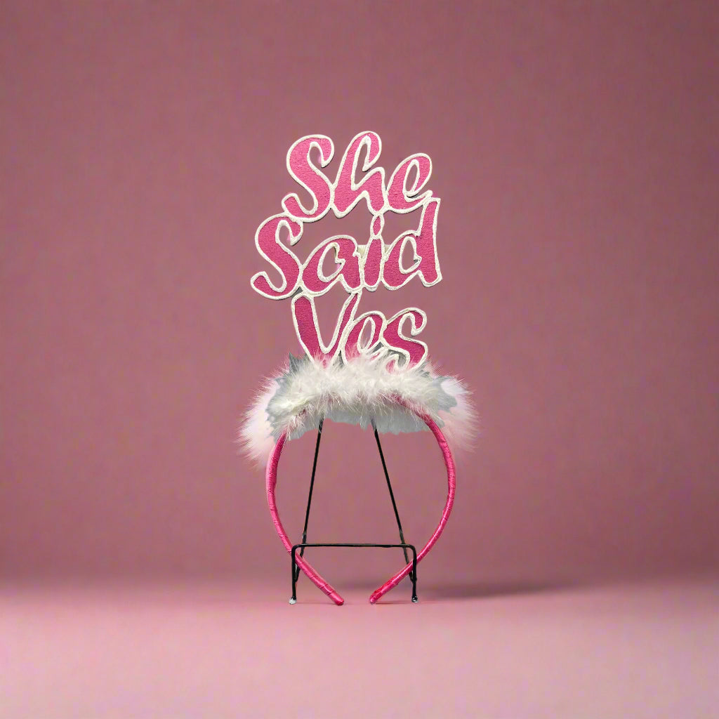 Add a fun twist to your look with this playful "She Said Yes" hair band. Perfect for celebrating special moments or just brightening your day, it keeps your hair stylishly in place while spreading joyful vibes wherever you go.