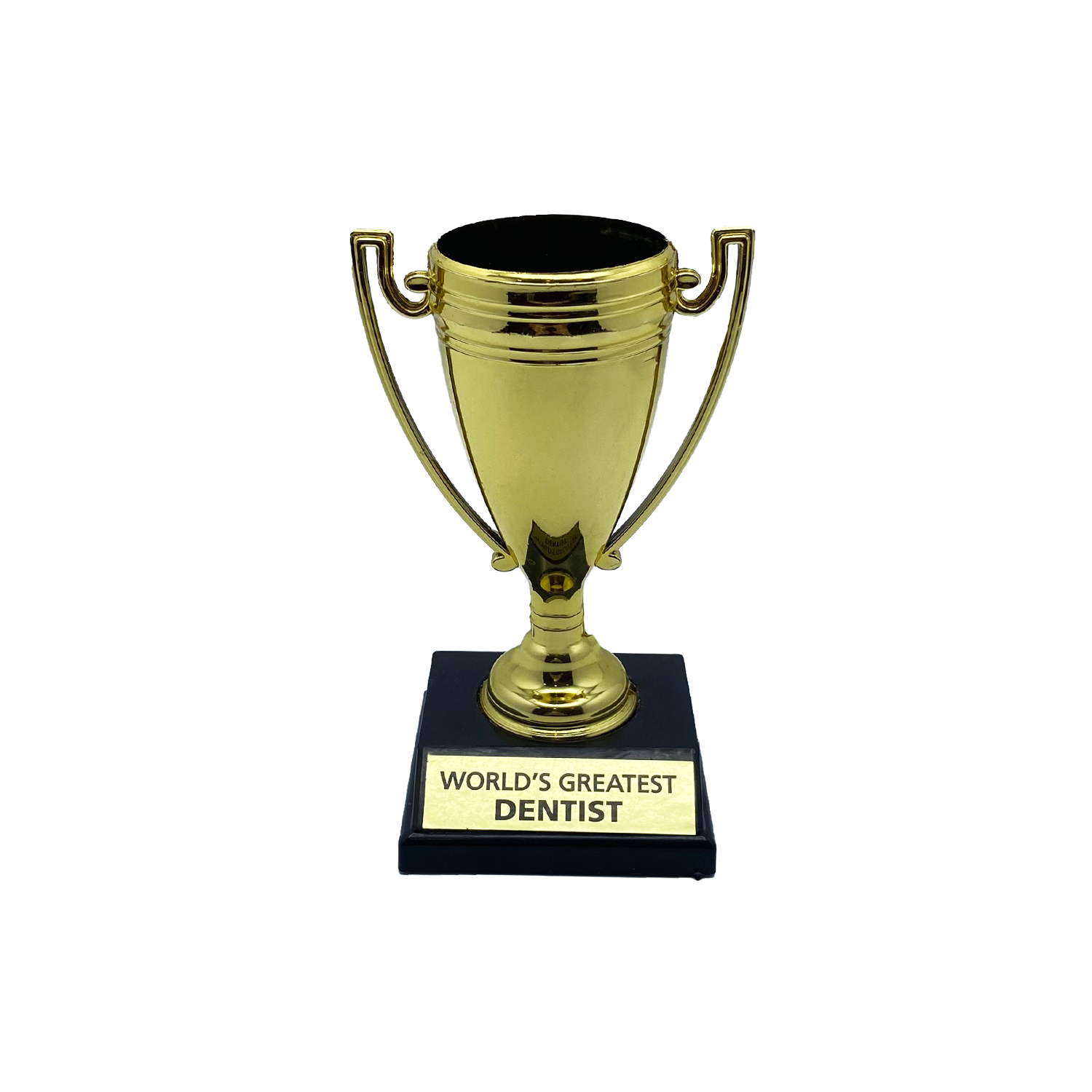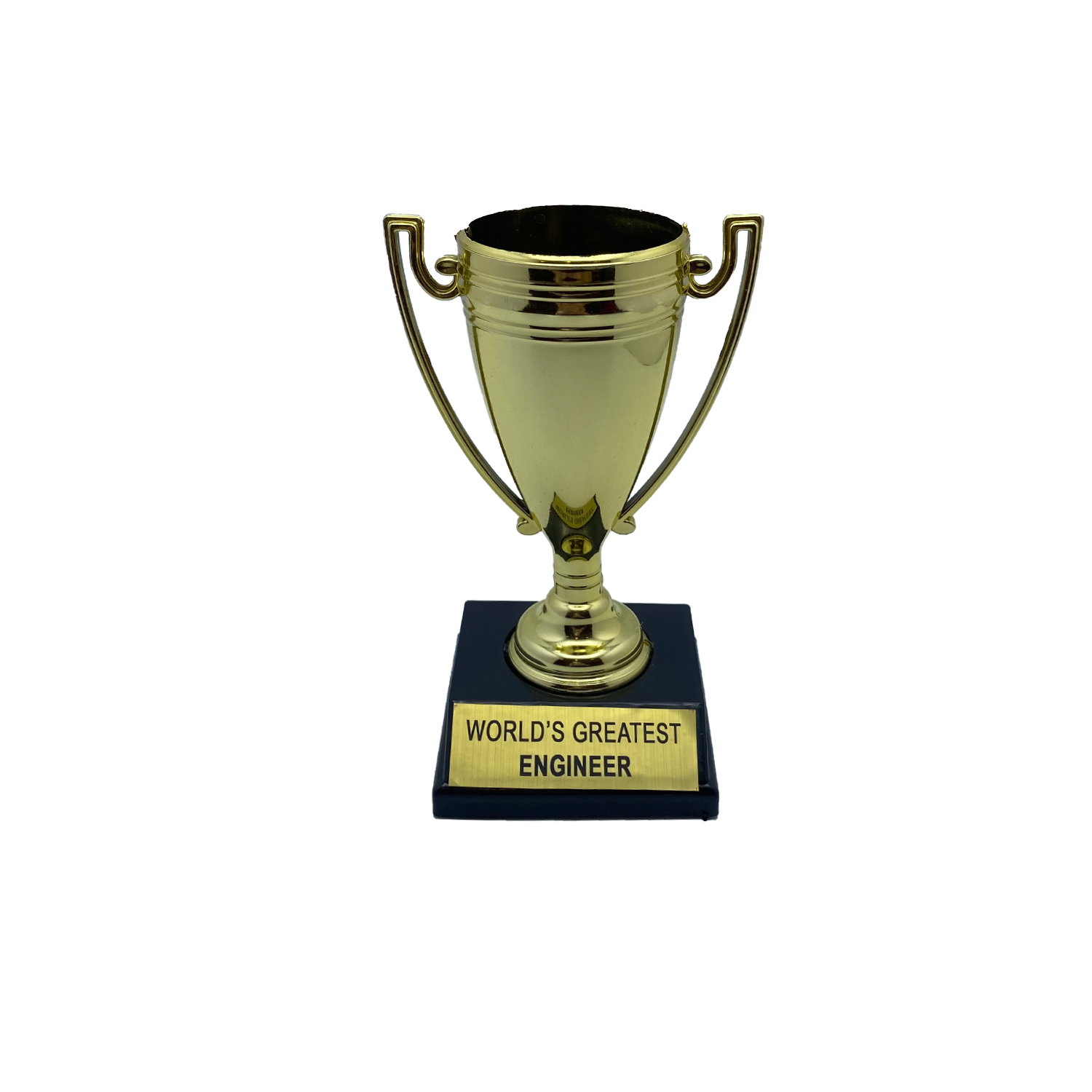 Strike gold with this award-winning Trophy! Show off your accomplishments with this glitzy golden reminder of your success. Perfect for making a statement and celebrating your victories! (Go ahead, you deserve it!)